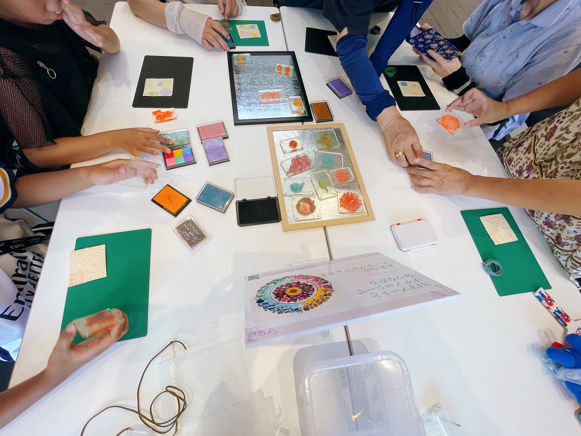 花から作った紙を使ったワークショップ。万博会場でも行われ、多くの参加者で賑わった