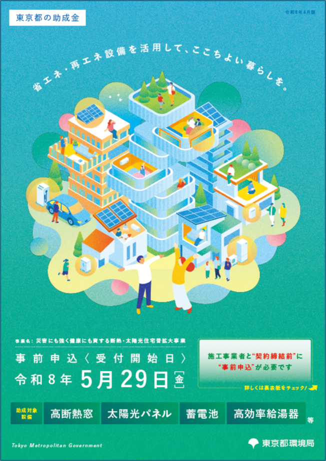 | 東京都既存住宅省エネ診断・設計等支援事業 | 既存住宅の省エネ診断や、省エネ基準やZEH水準へ適合させるための省エネ設計等に対する助成を実施しています。 | 住宅政策本部民間住宅部計画課脱炭素化施策推進担当 メール S1090501(at)section.metro.tokyo.jp ※送信の際は、(at)を@に変換してください。 電話 03‐5320-5459 |