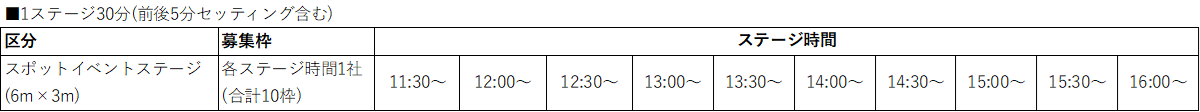 ※1ステージ30分(前後5分セッティング含む)を合計10枠ご用意しています。