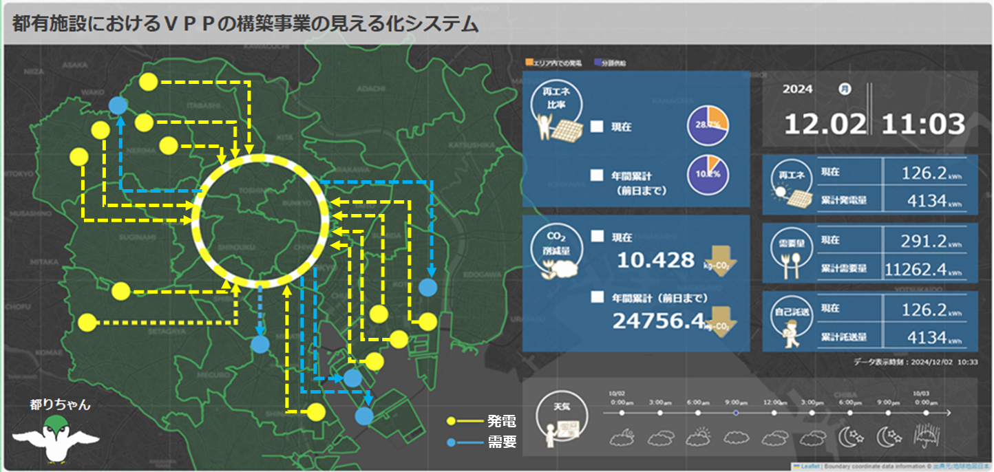 令和6年11月より、都有施設においてエリアエネルギーマネジメントシステムを導入し、太陽光発電設備にて発電した再エネ電力を活用開始しており、順次、20を超える施設を追加していきます