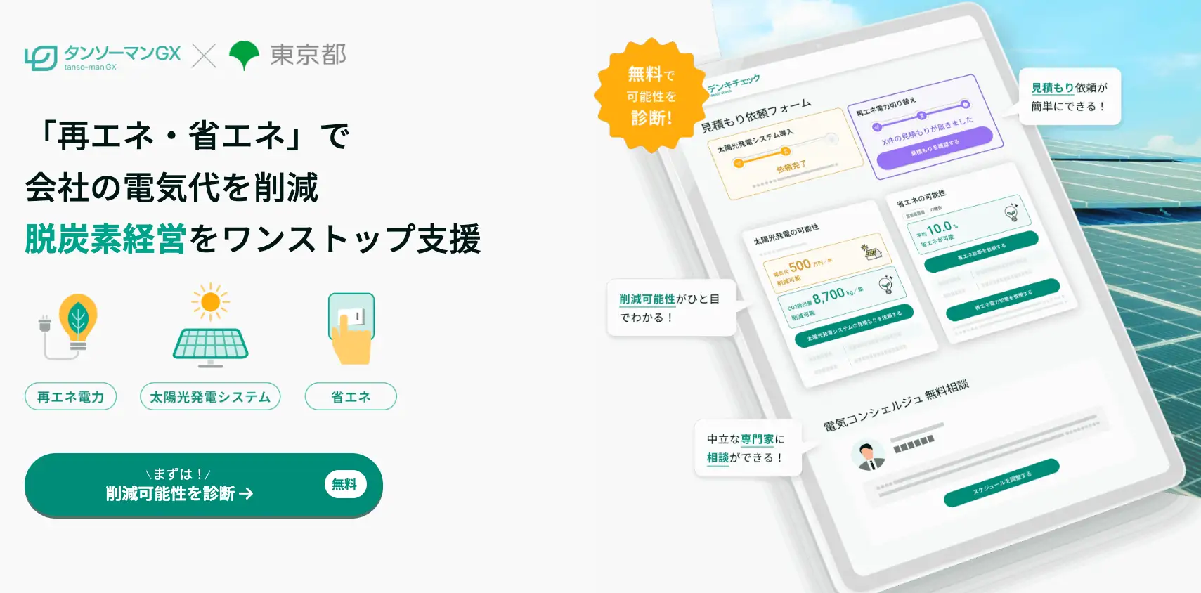 本サービスは、東京都内に事業所を持つ法人・企業の皆様を中心に、電気代削減と脱炭素の取り組みを「検討しやすく」「進めやすく」することを目的としています。