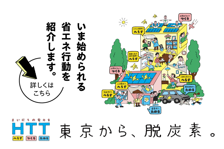 HTT<電力をⒽへらす・Ⓣつくる・Ⓣためる>取組を紹介しています。