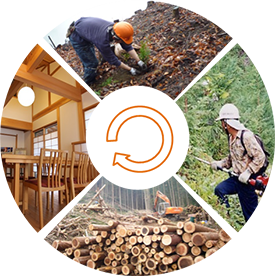 花粉の少ない森への更新のために、多摩地域のスギ・ヒノキ林を伐採した後、花粉の少ないスギ等を植樹するために募金を活用します。伐採した木材(多摩産材)の利用を拡げ、伐って、使って、植えて、育てる、という森林の循環を進めていきます。