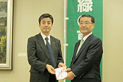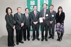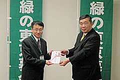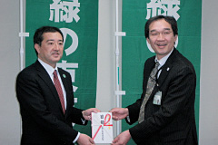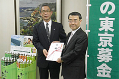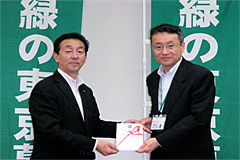 - 株式会社伊藤園様は、昨年6月14日から8月31日までの間、“自然が好きです。お~いお茶「お茶で日本を美しく。」キャンペーン”を展開しました(こちらでご紹介しています)。 このたび、このキャンペーンの成果を「緑の東京募金」にご寄附いただきました。 募金は、「海の森の整備」及び「校庭の芝生化」に使わせていただきます。ありがとうございました。