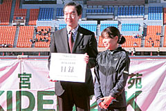 - 平成23年12月18日、社団法人東京陸上競技協会様、アールビーズスポーツ財団様主催で、本格駅伝イベント「2011神宮外苑EKIDEN20K」が国立競技場で開催されました。 このイベントの参加費用の一部を、街路樹を増やして心地よいランニングライフを送るためにと「緑の東京募金」にご寄附いただきました。 大会当日、ゲストランナーの吉田 香織選手から、目録をいただきました。 募金は「街路樹の倍増」に使わせていただきます。ありがとうございました。