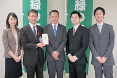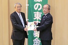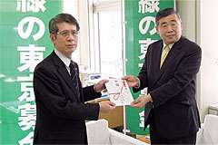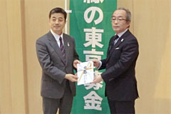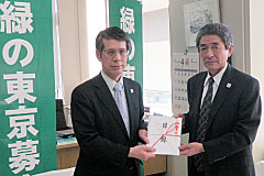 - JAバンク東京(都内16JA・信連)様には、「緑の東京募金」に協力する「みどりがいっぱい定期貯金」を取り扱っていただきました。 このたび、今回の「みどりがいっぱい定期貯金」の成果を「緑の東京募金」にご寄附いただきました。募金は、「緑の東京募金」各事業に使わせていただきます。ありがとうございました。