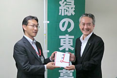 - 東京産業廃棄物協会様から、緑の東京募金へご寄附いただきました。東京産業廃棄物協会様は、環境問題に対する関心の高まりの中で、社会的・公益的役割を積極的に果たしていくために、さまざまな環境活動への参加、次世代を担う子供たちに向けた環境学習活動などを環境活動事業と位置付けて積極的に取り組まれております。ありがとうございました。