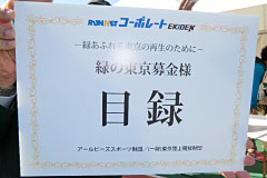 - 渋谷区町会連合会様は、平成24年11月3日、4日に開催された「第35回渋谷区くみんの広場ふるさと渋谷フェスティバル」において、昨年度に引き続き、「緑の東京募金」の活動に取り組み、募金箱に集まった募金をご寄附いただきました。ありがとうございました。