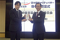 - 住友生命保険様は、職員参加型ボランティア活動「スミセイ・ヒューマニー活動」の一環として、毎年12月に東京本社ビル内にてチャリティバザーを開催しています。当活動は、職員の皆さんが持ち寄った物品等を販売し、収益金を社会貢献団体等に寄附する取組で、今年で19年目を迎えます。このたび、チャリティバザー収益金の一部を「緑の東京募金」にご寄附いただきました。ご寄附をいただくのは今回で5回目となります。 募金は「花粉の少ない森づくり」に使わせていただきます。ご協力ありがとうございました。