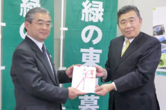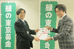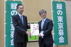 - JAバンク東京(都内15JA・信連)様には、「緑の東京募金」に協力する「緑がいっぱい定期貯金」を取り扱っていただきました(こちらで紹介しています)。 このたび、今回の「緑がいっぱい定期貯金」の成果を「緑の東京募金」に御寄附いただきました。募金は、「緑の東京募金」各事業に使わせていただきます。 ご協力ありがとうございました。
