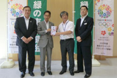 - 株式会社伊藤園様は、昨年7月1日から9月30日までの間、「お茶で東京を美しく。」キャンペーンを展開しました。 これは都内の緑豊かな環境づくりとヒートアイランドの緩和のため、東京都が推進する緑化を支援する取組です。このたび、このキャンペーンの成果を「緑の東京募金」にご寄附いただきました。キャンペーンの詳細はこちらをご覧下さい。ご協力ありがとうございました。