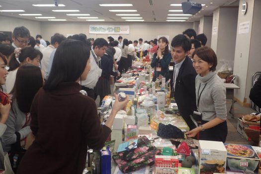 住友生命保険相互会社様は、職員参加型のボランティア活動「スミセイ・ヒューマニー活動」の一環として、毎年12月に「東京本社チャリティバザー」を開催しています。職員の皆さんが持ち寄った物品をチームに分かれて販売し、チームごとに収益金をNPO団体等に寄附する取組です。チャリティバザーでは、社会福祉事業所のパンやクッキーの販売なども行われました。