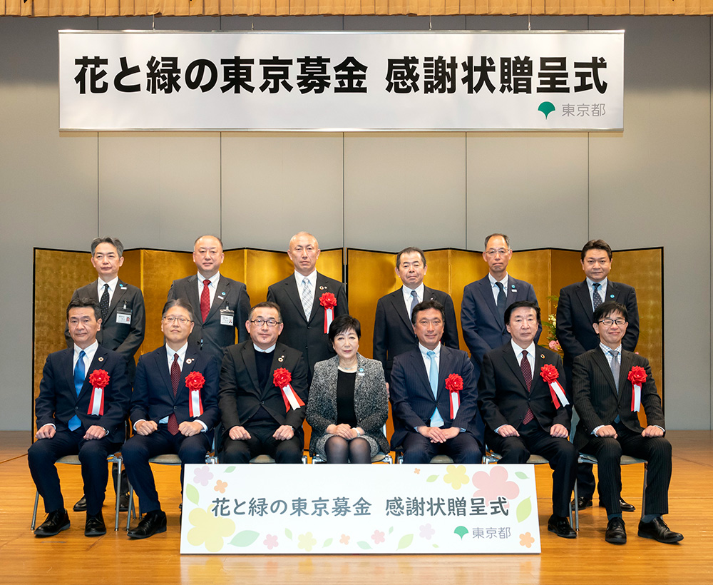 花と緑の東京募金に功績のあった方に感謝の意を表するため、「花と緑の東京募金感謝状」を贈呈させていただきます。
