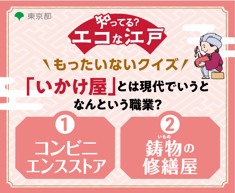 ⇒鋳物製品の修理を行う職人を指します。江戸時代は「壊れたら直す」という習慣が身についており、鋳掛屋(いかけや)等の修理業者は無くてはならない存在でした。
