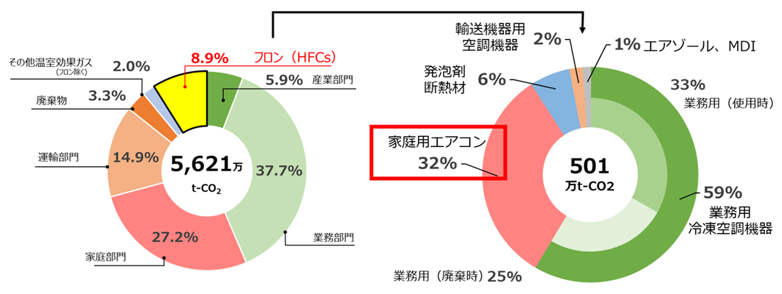都内における代替フロン(HFCs)排出量の約3割が、家庭用エアコンからの排出であるとされており、さらなるフロン排出削減のためには家庭での取組も重要です。