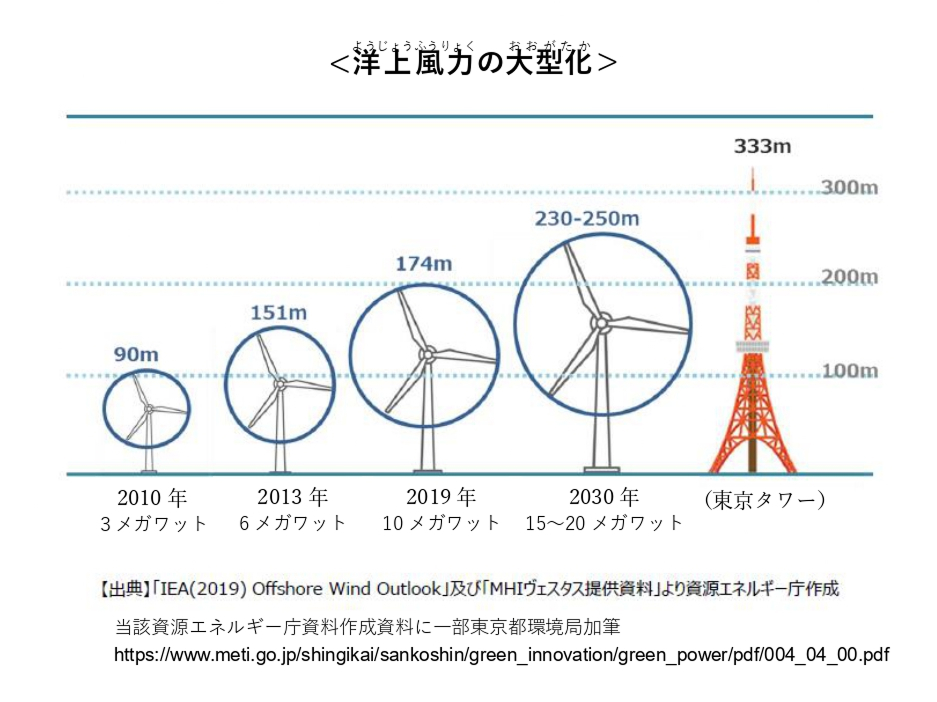 洋上風力発電は、CO2をへらすため、「自然のチカラを利用した電気」を大きく増やすための、「切り札」とも言われている。