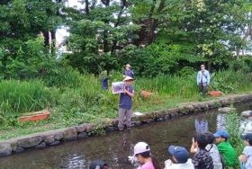 もとから住んでいる生き物やその環境を守るために外来種の除去が必要であることを児童の皆さんに説明し、理解してもらいました。