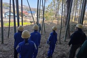 竹は地下茎でつながっているため繁殖力が強く、管理を行わない場合、周囲へ次々に広がっていきます。竹林を適切に管理していくことの重要性を学ぶため、今回、伐採作業体験を実施しました。