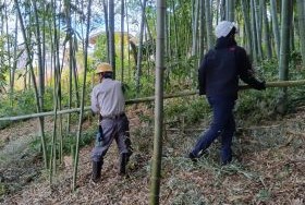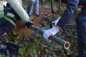 ボランティア団体の指導のもと、保全地域内の竹林管理のために竹を伐採しました。