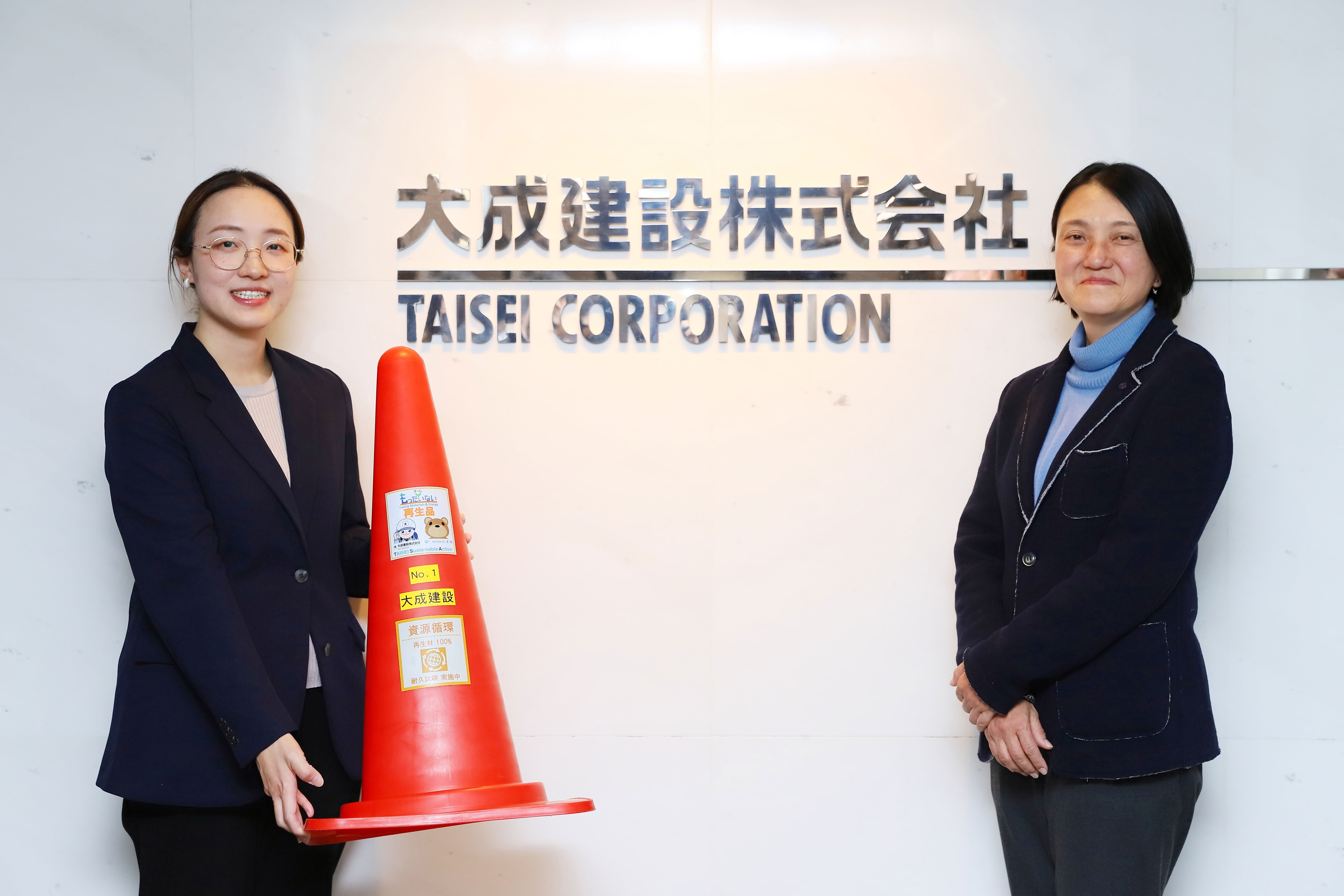 150年を超える歴史をもち、土木・建築を中心に事業を展開する大成建設株式会社。日本全国に土木・建築現場を抱える同社は、建設現場で不要となった三角コーンの再資源化に向けた実証試験に取り組んでいます。この活動について、クリーンエネルギー・環境事業推進本部のお二方にお話を伺いました。
