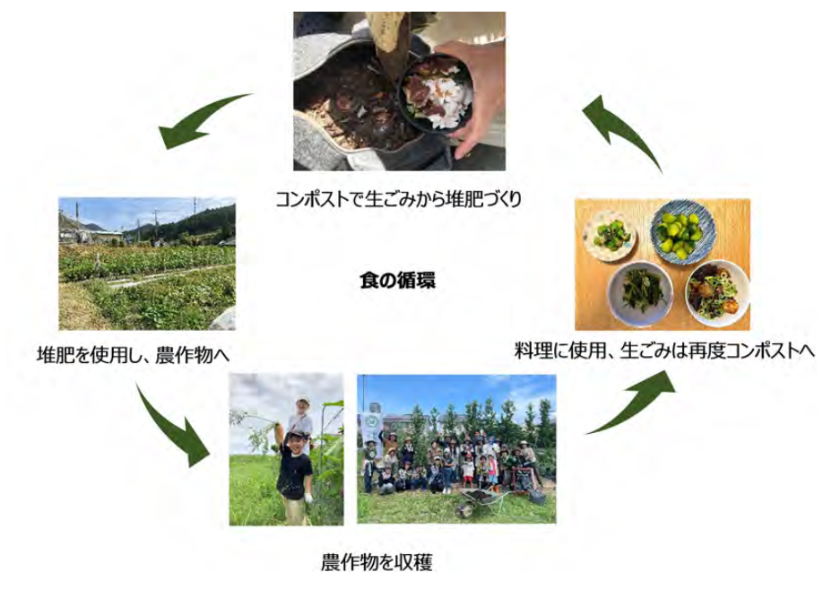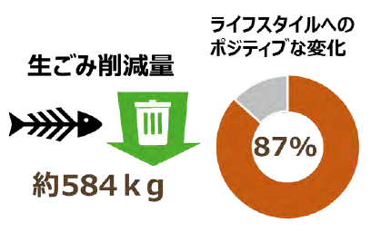 コンポストを活用し自宅で食品廃棄物(生ごみ)から堆肥をつくる→その堆肥を地域の農家と連携し使用してもらう→育ててもらった農作物を社員が収穫に行く→自宅で料理に使いまた生ごみをコンポストへ、といったプログラムに2023年は50名の社員が参加し、生ごみを約584kg削減するとともに、参加者の87%がライフスタイルへのポジティブな変化を感じる結果となった。
